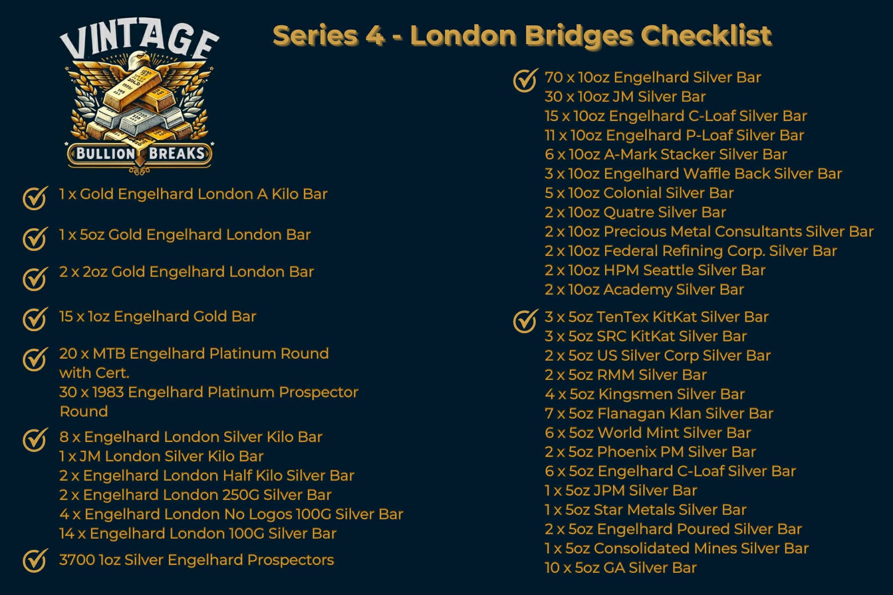 Series 4 - London Bridges Checklist
